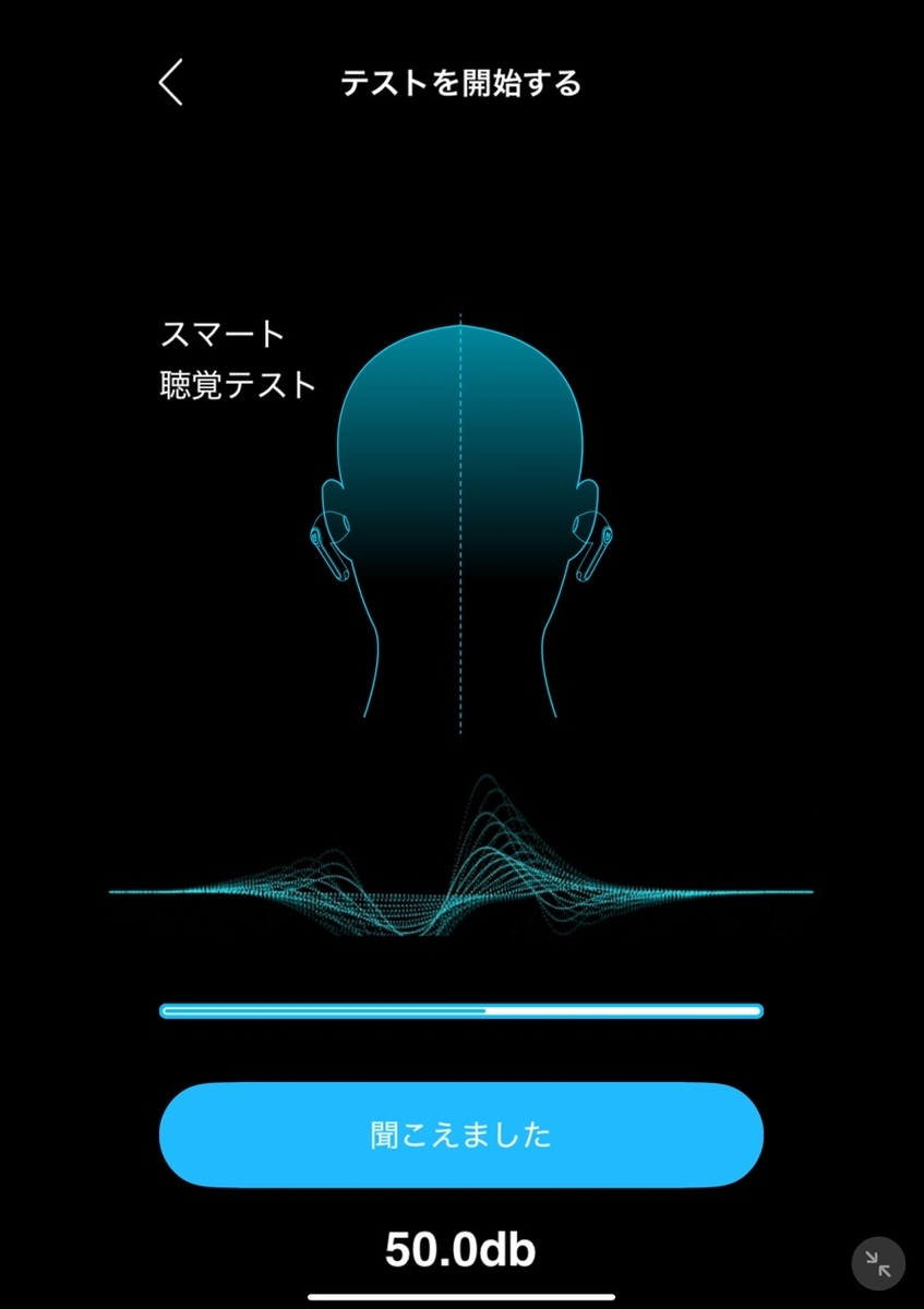 次に、SOUNDPEATS JAPANのイヤホンならではの機能である「聴力テストによる自動チューニング」を試してみました。